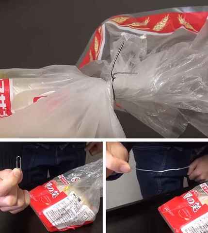 Those plastic bread bag ties help to keep our bread fresh. But if you lose one it doesn’t mean that your bread is done for. Just twist it up and fasten it with a paperclip.