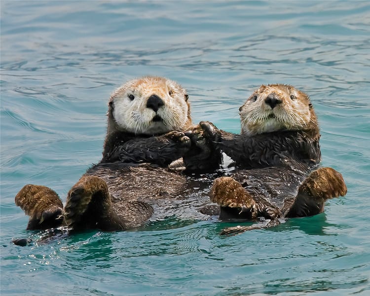 The rumors are true! While sea otters sleep–often a mother and her pup–they hold each other’s paws to keep from floating away. So cute!