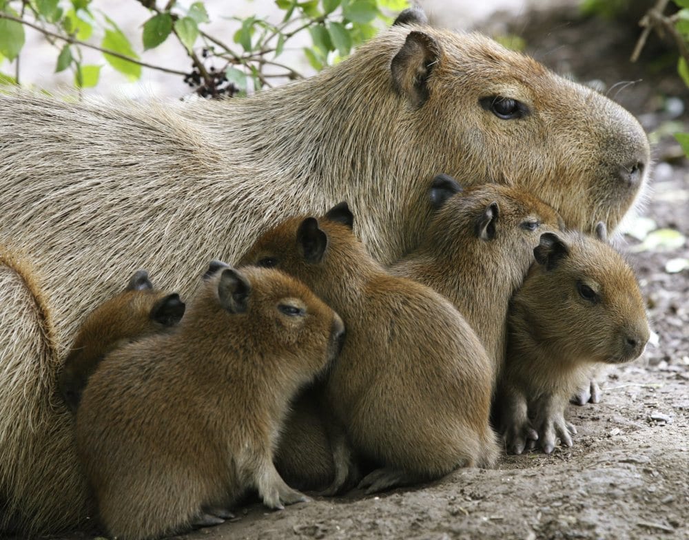 This adorable family of Capybaras can grow to be as large as dogs, reported by Live Science. They are the world’s largest rodents!