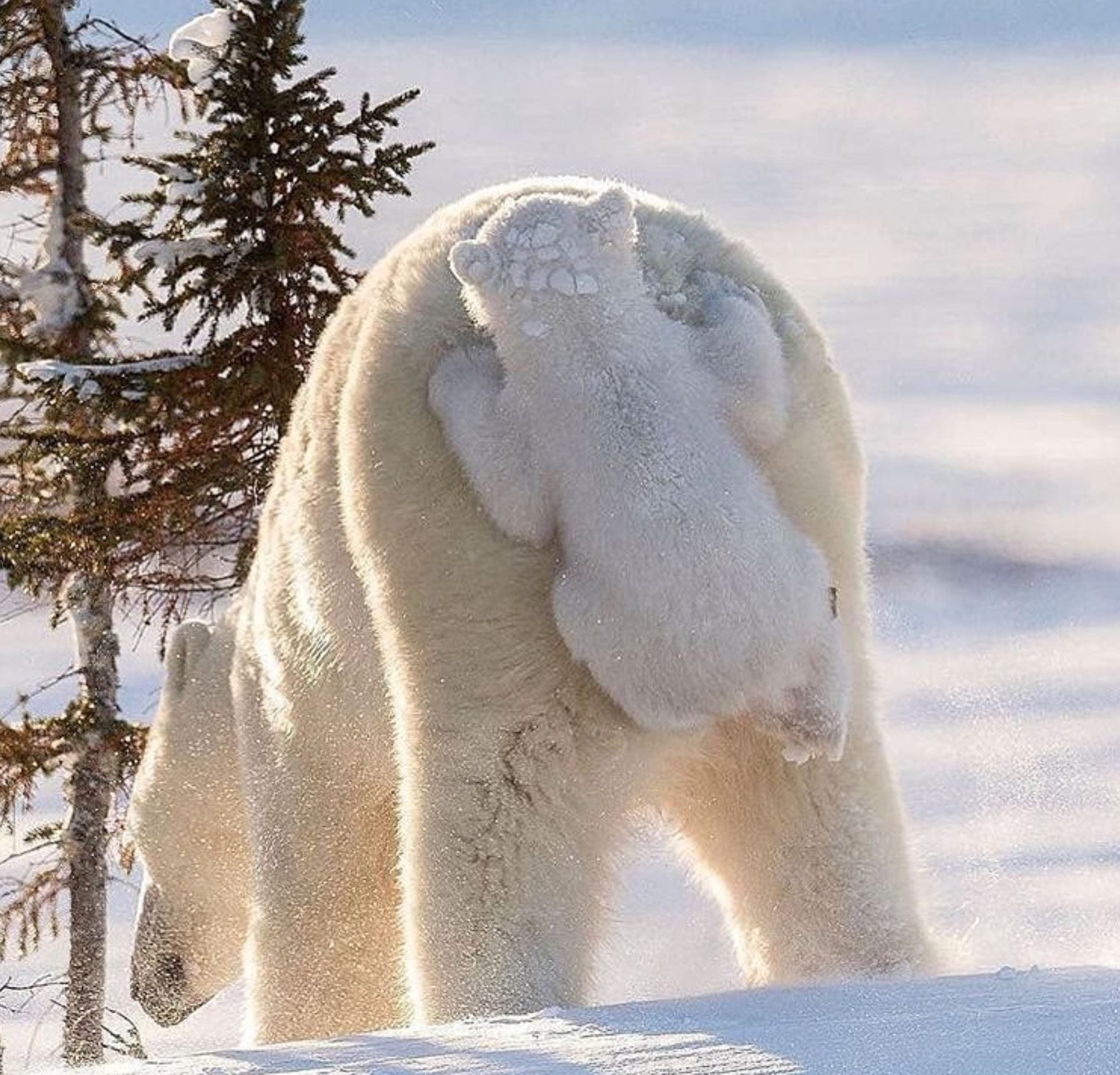 Everyday is pile on a parent day for these polar bear cubs! Did you know that polar bears have black skin underneath their coat of thick fur? Their fur appears white but it is actually transparent, reported by World Wildlife. For evolutionary reasons, polar bears have white fur so they can blend into their arctic surroundings.