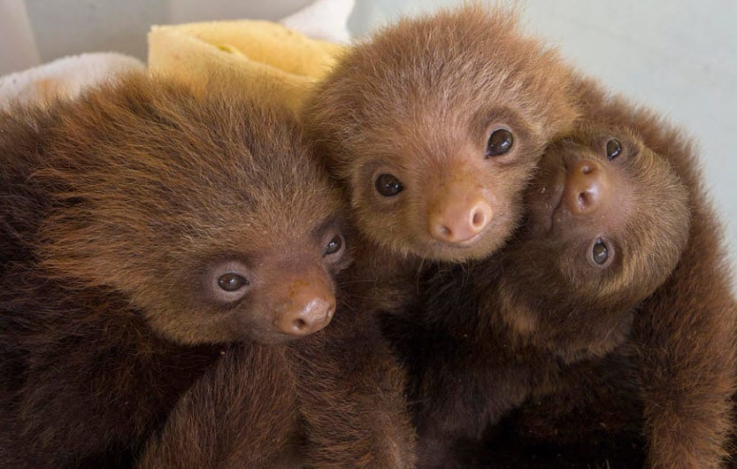 Can baby sloths be any cuter? Those big round eyes and little snouts make all the cooing sounds come out.