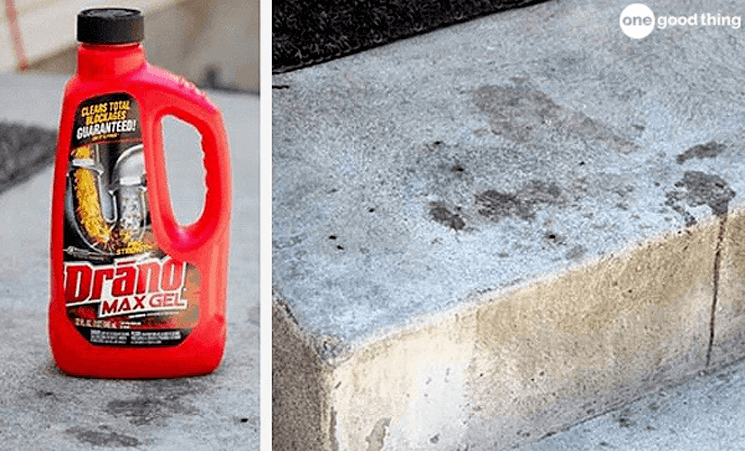 Leaky exhausts and transmissions in older cars can create unsightly stains on the concrete in your driveway and garage. But this household drain cleaner can help you scrub those stains away in a jiffy!