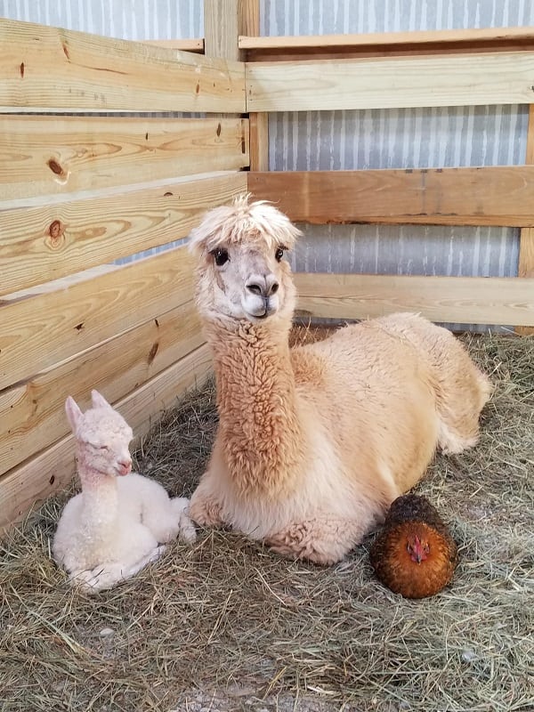 The alpaca just had her baby, and her chicken friend wasn’t going to let her do it alone. Like a good friend, she showed up to see the baby when it was born. She is letting the alpaca know that she will always be there for her and her baby. Who knew animals were so sentimental?
