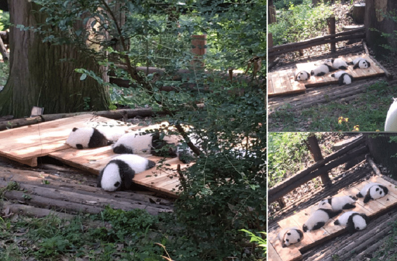 These little pandas must be hot and tired. They look like they just collapsed on their little deck and couldn’t go on anymore. They kind of look like little panda marshmallows. Those chubby little cuties are just too much to handle. They don’t even know how easy they have it right now.