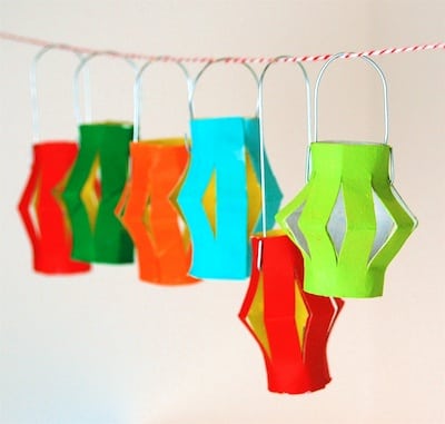 Crea un ambiente divertido y festivo para tu próxima reunión usando rollos vacíos de papel higiénico. Todo lo que necesitas es un poco de pintura, pegamento, y un poco de alambre. ¡Si realmente quieres hacer que brillen cuélgalas bajo las luces! Puedes encontrar el tuturial aquí.