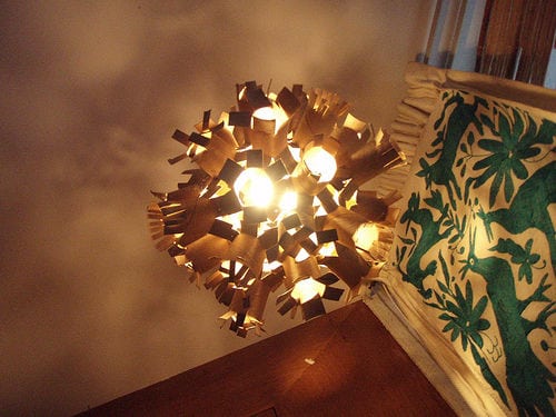 Para este proyecto, necesitarás aproximadamente 35 rollos vacíos de papel sanitario, una grapadora, cinta adhesiva, tijeras, un bolígrafo y una bombilla con instalación eléctrica ¡Eso es todo! Encuentra cómo hacerlo aquí.