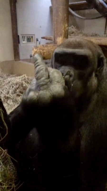 Gorillas catch on to things pretty quickly. When exposed to humans regularly, you can expect them to learn a few bad habits. This gorilla was tired of people photographing him, so he flipped off the camera. He sure wasn’t ready to take it back. Good thing that glass is there. An offended gorilla could be a dangerous gorilla.