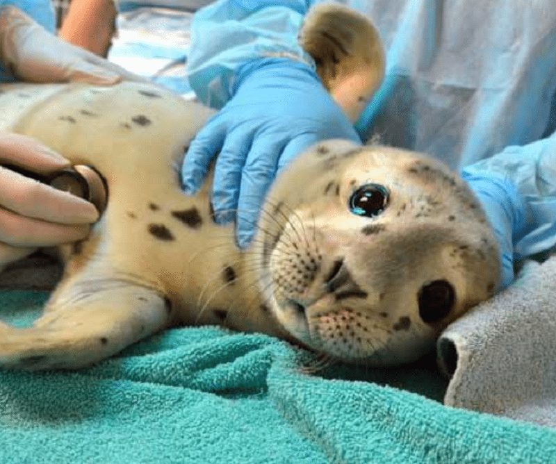 This pretty little seal is at the vet for a checkup. She’s a good girl and lets them do whatever they need to make her healthy. Her pretty blue eyes don’t even seem to be worried. Hopefully, she is as healthy as can be and can go back to the wild to live happily ever after.