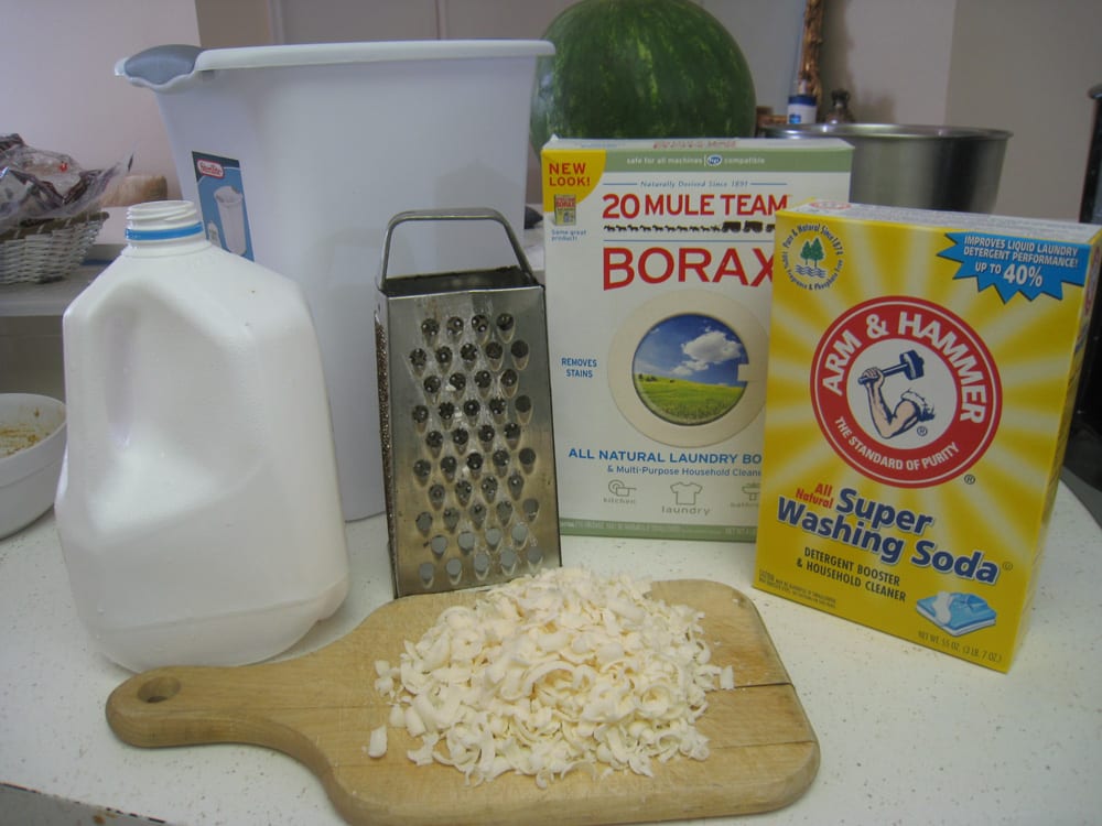 Using a bar of soap, you can easily make a great homemade laundry detergent. Grate the whole bar, and then pour it into a saucepan filled with four cups of water. Stir until the soap has dissolved, and then pour the soap mixture into a container. Add a cup of baking soda, a cup of washing soda, and a ½ cup of Borax, and stir well until everything is dissolved. Cover the container, and let it sit overnight to thicken. Use about two tablespoons of this mixture per laundry load.