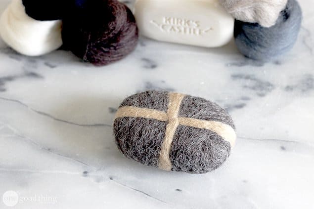 Felted soap is great for exfoliating your skin, and it’s super easy to make. All you’ll need to make it is wool roving in a couple different colors and one of bar soap.