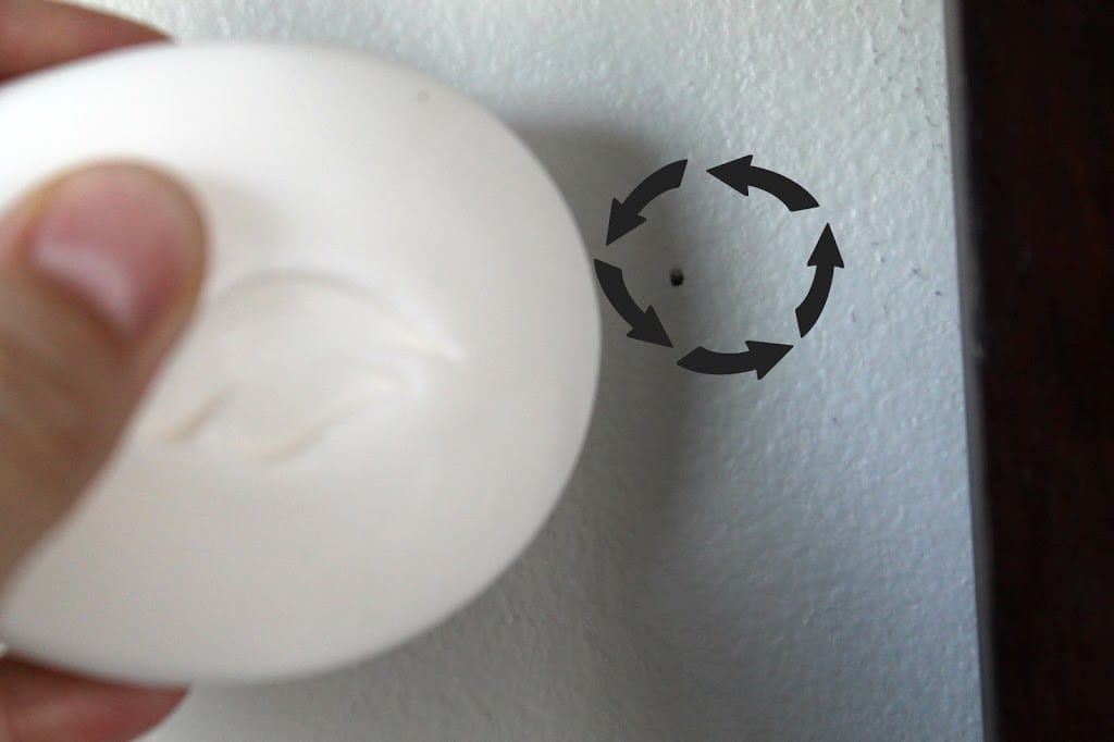 If you have a few nail holes in your wall, you can easily hide them with a little soap. Choose a bar of soap that’s the same color as your walls, and then rub the dry soap over the little hole until the hole is filled. This easy idea is a great way to hide nail holes until you spackle or repaint your walls.