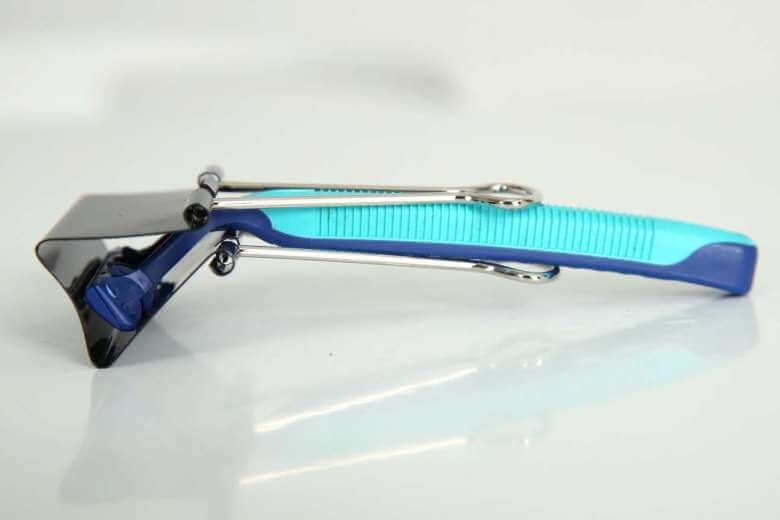 Razorblades are undoubtedly sharp. Protect exposed razors by covering them with a binder clip. This is great for traveling as well.