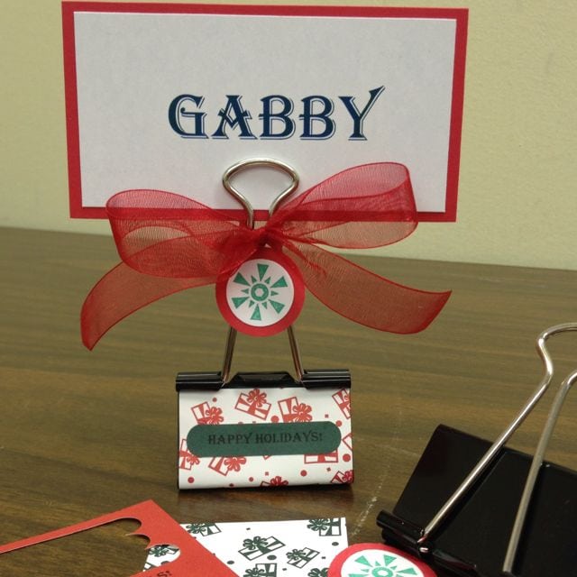 Craft a personalized name plate using a binder clip. This is a, both, thoughtful and economical gift to give someone. Decorate to their preference.