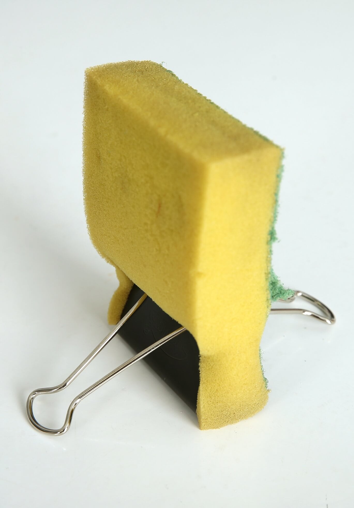 Many times, sponges are left laying on contaminated sink counters. Keep sponges dry and sanitary by using a binder clip to hold the sponge upright. Happy cleaning!