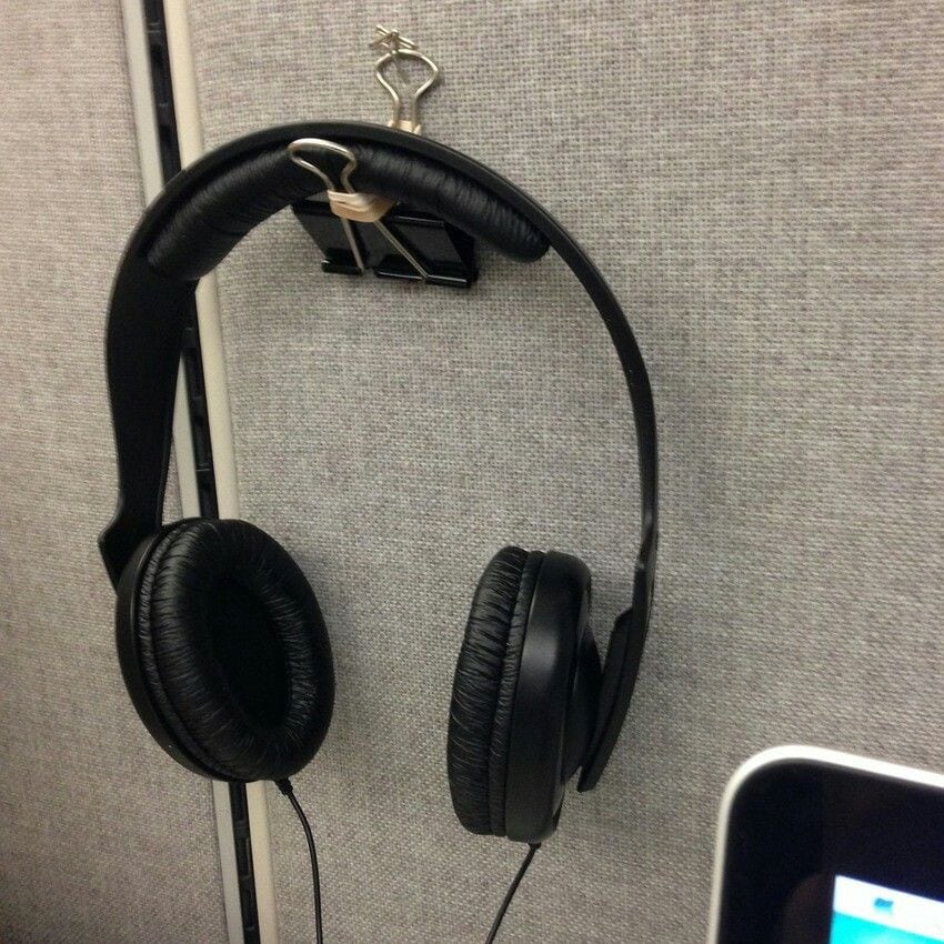 Headphones can be large. Keep them out of the way by creating a binder clip headphone holder.