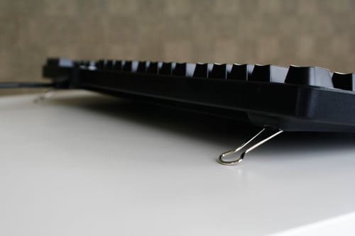 Need a little boost? Prop the computer keyboard up a bit by using binder clips. This helps your wrists and fingers when typing.