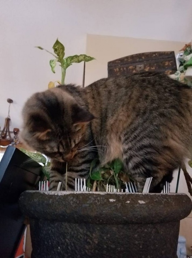 Con ellas los lifehacks no funcionan: “Me recomendaron colocar tenedores dentro de las macetas para que el gato no trepe encima de las plantas”