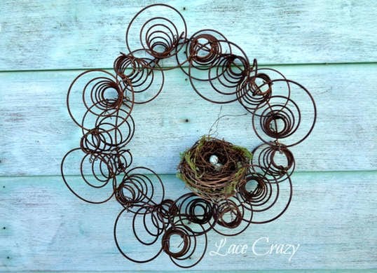 Want a wreath with a unique look? Use mattress springs. Use a piece of wire to hold the springs together.