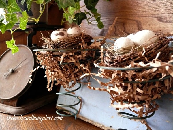 Create some nature decor in your home with mattress springs. Attach some upsidedown springs to a piece of wood. Place some decor inside, like twigs and fake eggs.
