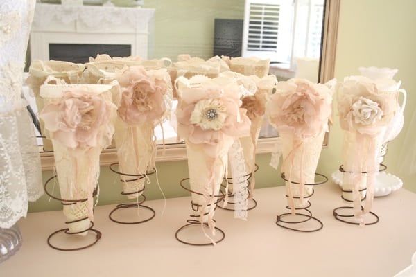 Create a vintage vase from mattress springs. All you need is some vintage looking lace and embellishments. And, of course, a mattress spring.