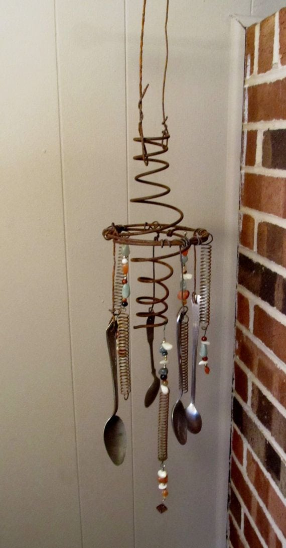 Mattress springs make great windchimes. Just hang one from a tree. Then hang other stuff of from it.