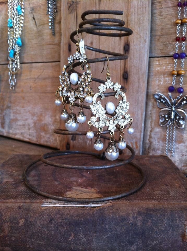 Use a mattress spring to organize your jewelry. Just place it upright. Hang earrings from it and place it on your shelf.