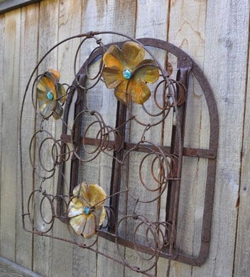 Get creative and use pieces of your old mattress to make some garden decor. This uses some springs and wires from the mattress. It’s embellished with some tin flowers.