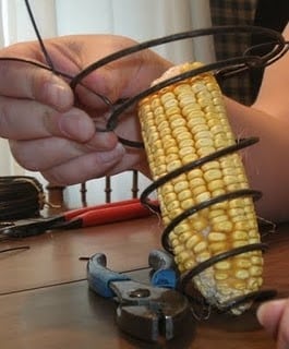 Use a mattress spring to feed the squirrels. Just pop in a piece of corn.