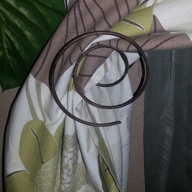 Keep your curtains in place with mattress springs. Just weave the fabric in the between the coils. Your fabric will stay tight in place.