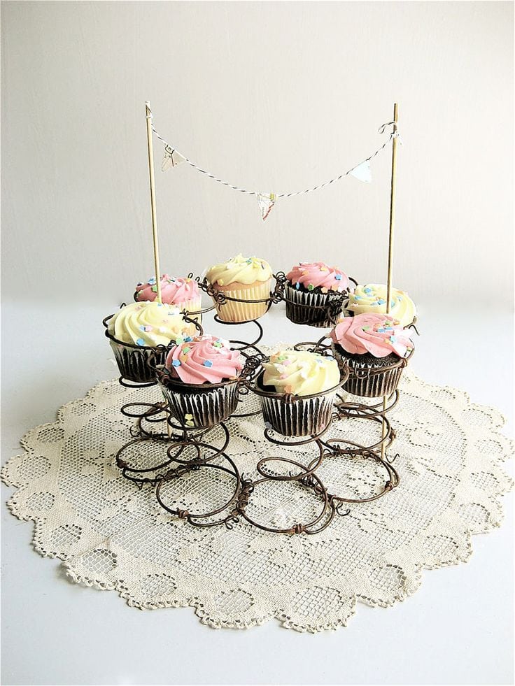 Need a cute way to display your cupcakes? Use mattress springs. Just pop the cupcakes right in.