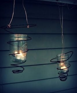 Use mattress springs to create some hanging lights. Place a spring upside down. Attach a string to hang them and add a votive inside.