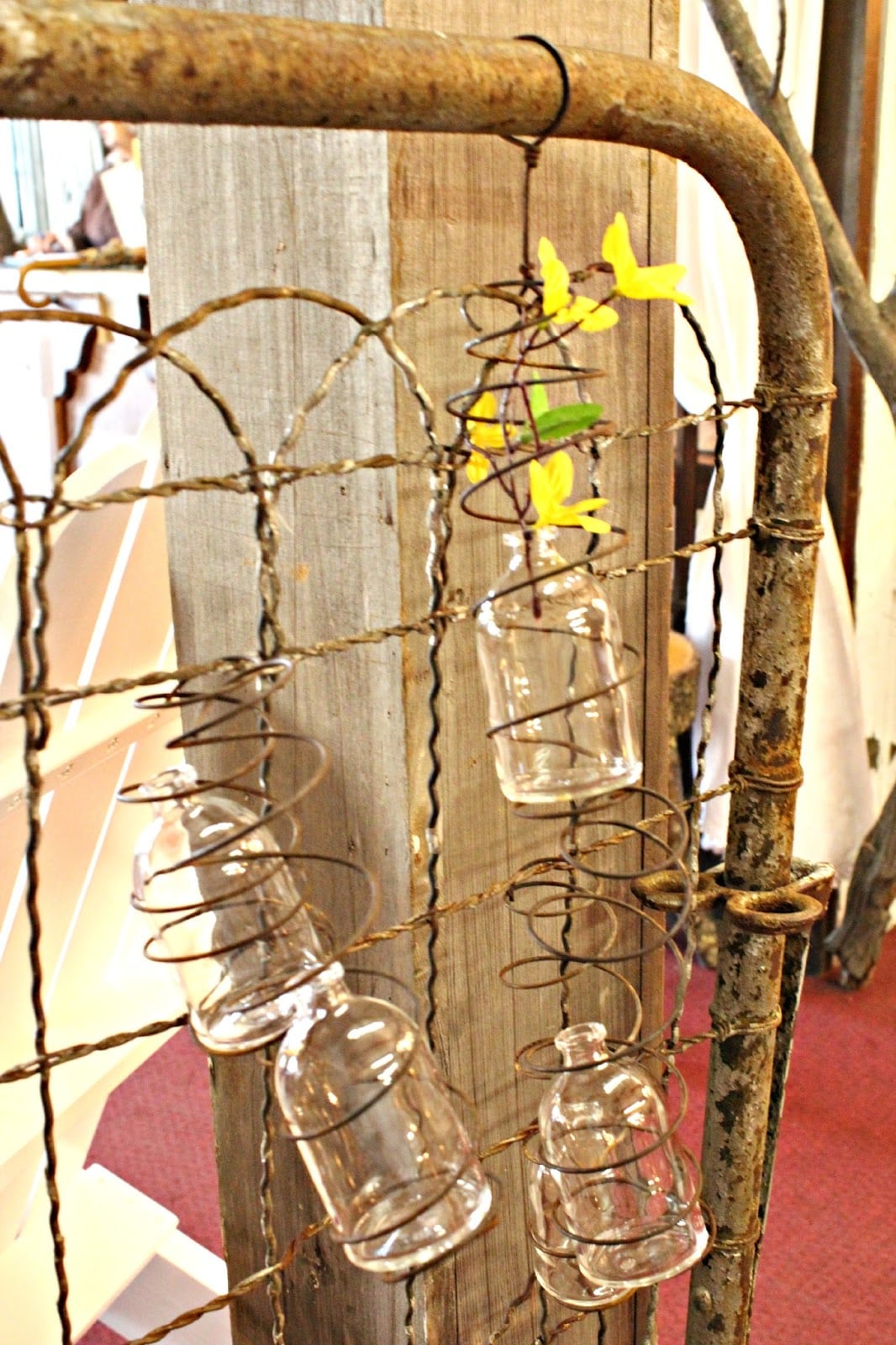 Those old mattress springs can come in handy. Just place one upright. Then pop in a flower bud vase.