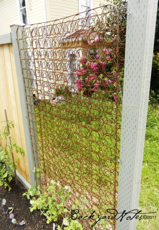 Use the inside of a mattress as a garden wall divider. It can also be used to house creeping plants. Think about how beautiful this would look when covered with roses!