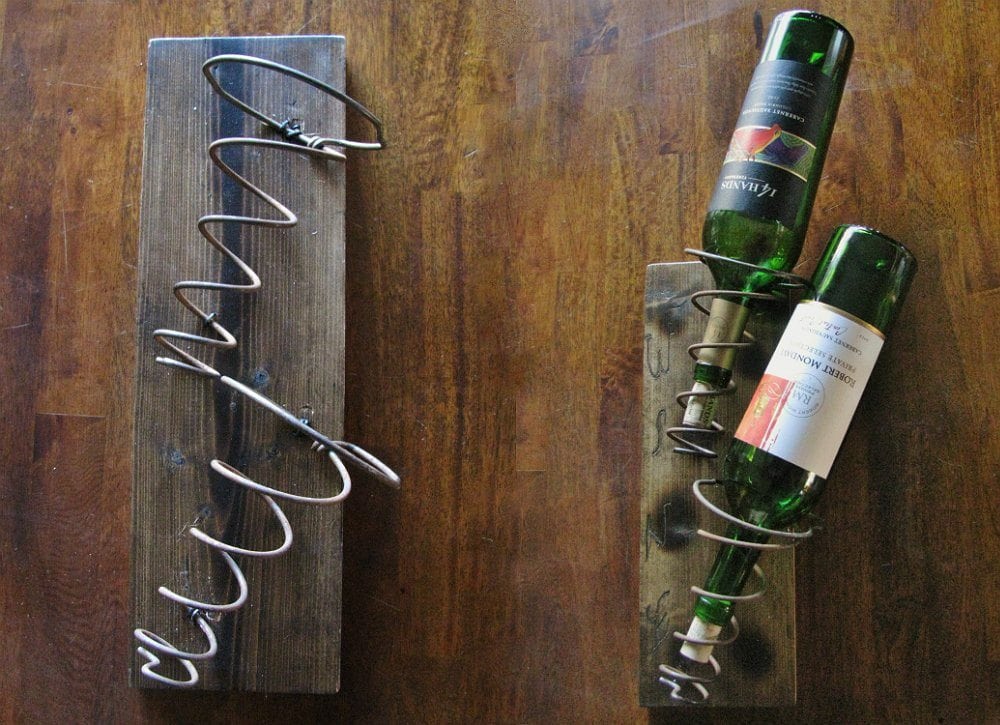 Use mattress springs to hold wine bottles. Just attach them to a piece of wood on an angle. Slide your wine bottles in upside down.