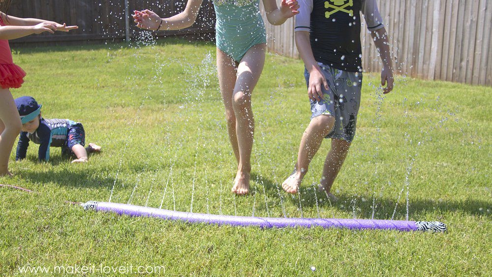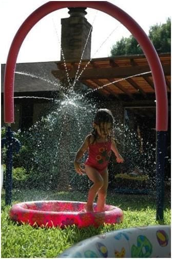Faça furos num espaguete, tampe uma das pontas dele e prenda a outra numa mangueira. As crianças vão amar brincar com a água no verão!