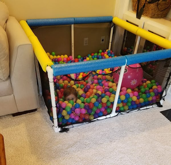 Tenha horas de diversão com esta piscina de bolinhas DIY. Você só vai precisar de canos de PVC e espaguetes de espuma, além das bolinhas, é claro! Aprenda a fazer com o tutorial original aqui.