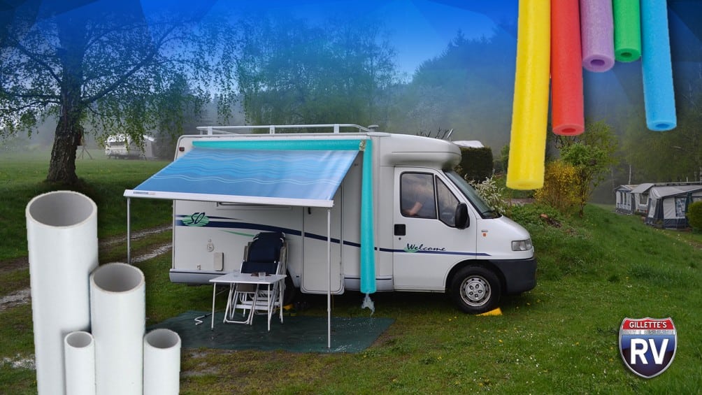Você pode criar sua própria calha para trailer com espaguetes de espuma. Corte o espaguete longitudinalmente e encaixe no teto. Veja os detalhes originais aqui.