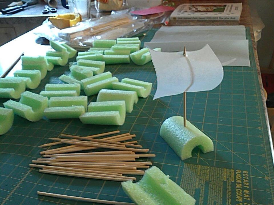 Faça divertidas competições de veleiros com espaguetes de espuma. Corte os espaguetes ao meio e use espetinhos de churrasco e papel de seda para fazer as velas. Aprenda com o tutorial original aqui.