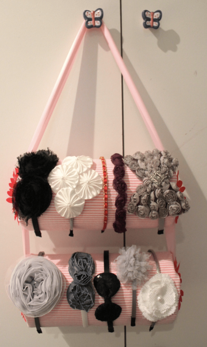 Encape um espaguete com tecido e decore com fita para criar um porta-arcos. Você encontra o tutorial original aqui.