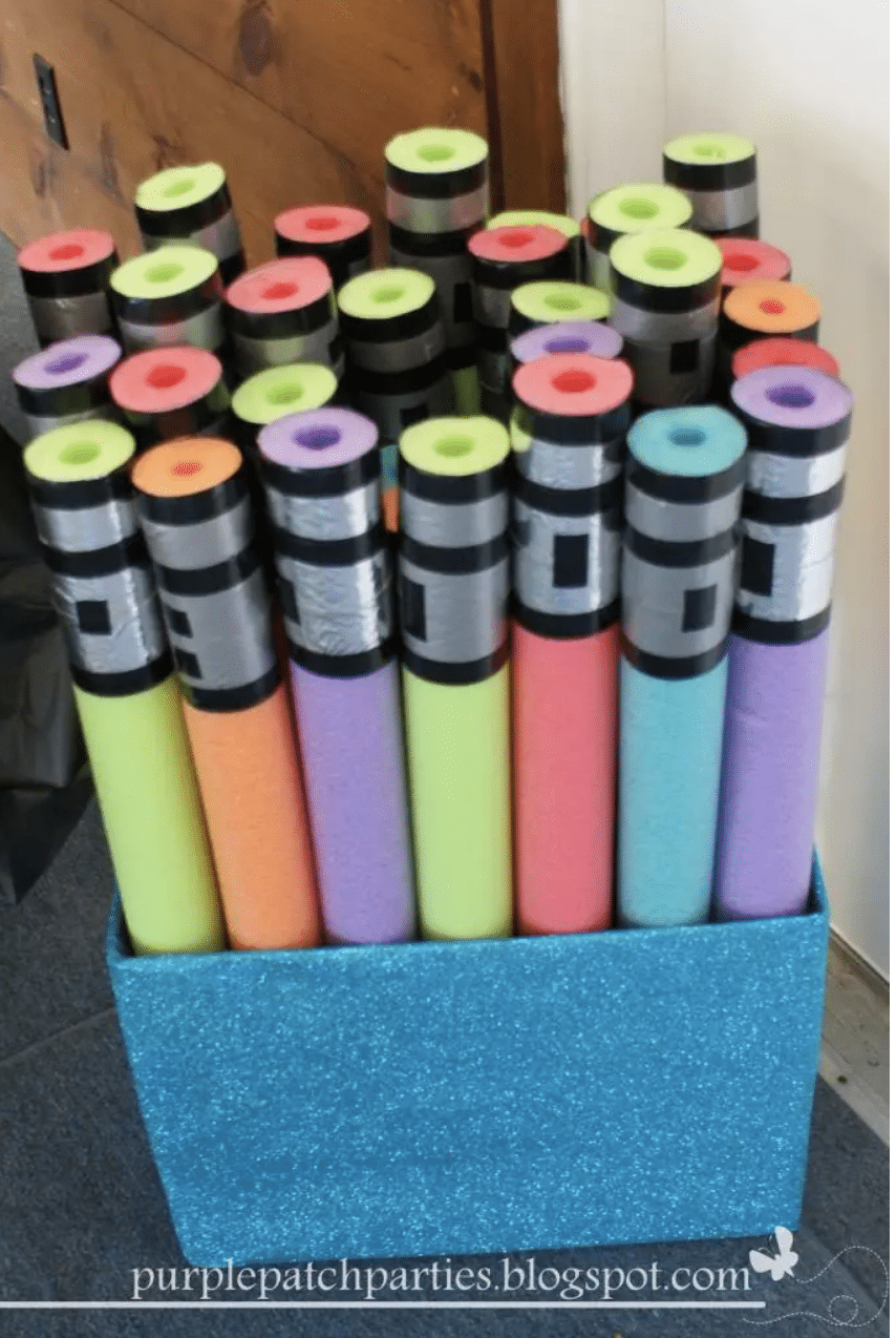 Por que gastar rios de dinheiro com brinquedos que seus filhos vão esquecer em um mês? Você pode criar um sabre de luz muito divertido com espaguete de espuma. Fica a dica para criar uma festa de aniversário com tema de Guerra nas Estrelas.
