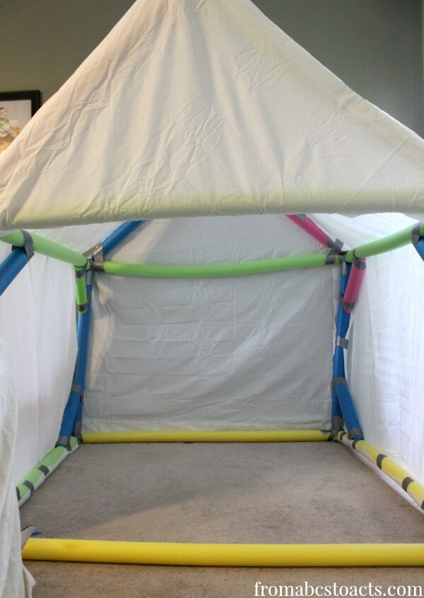 Use vários espaguetes para montar uma cabana para os seus filhos. Siga as instruções do tutorial original aqui.
