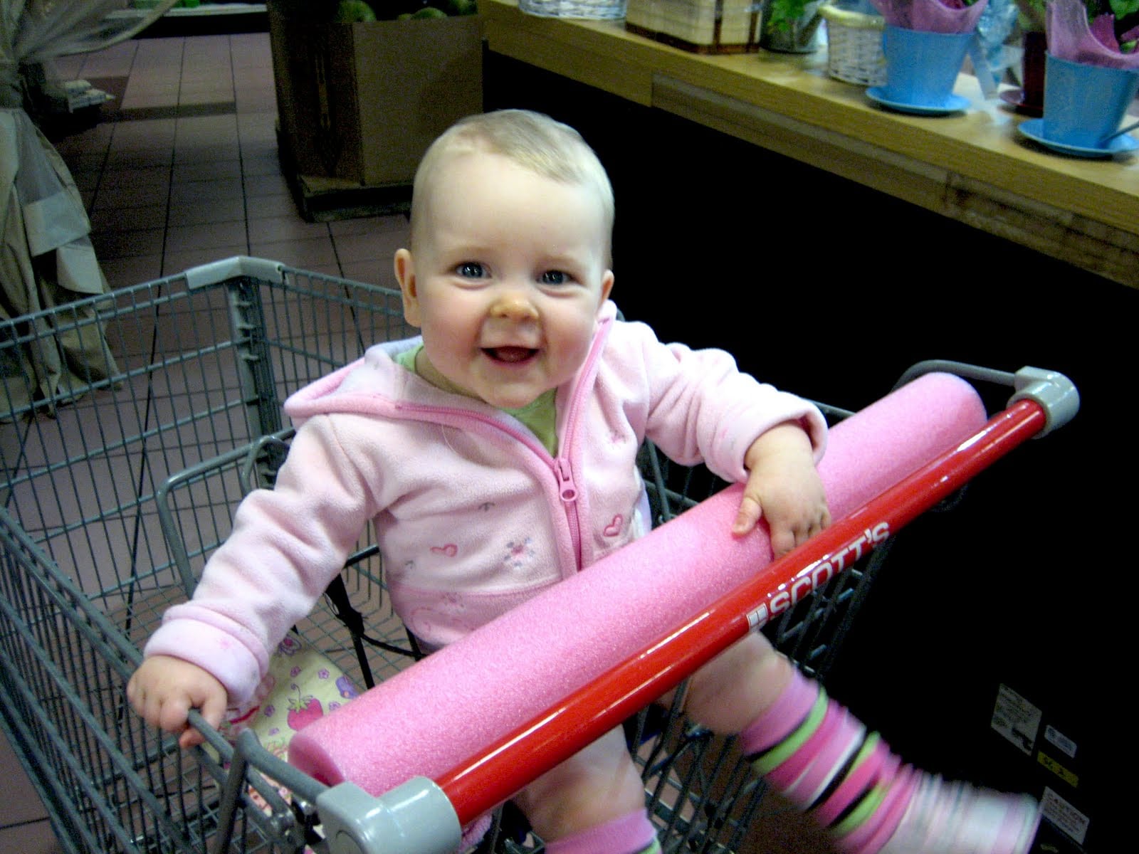 Os bebês sempre tentam morder os carrinhos de compra, ou pelo menos colocam a boca neles. Você pode evitar maiores problemas encaixando um espaguete de espuma no carrinho.