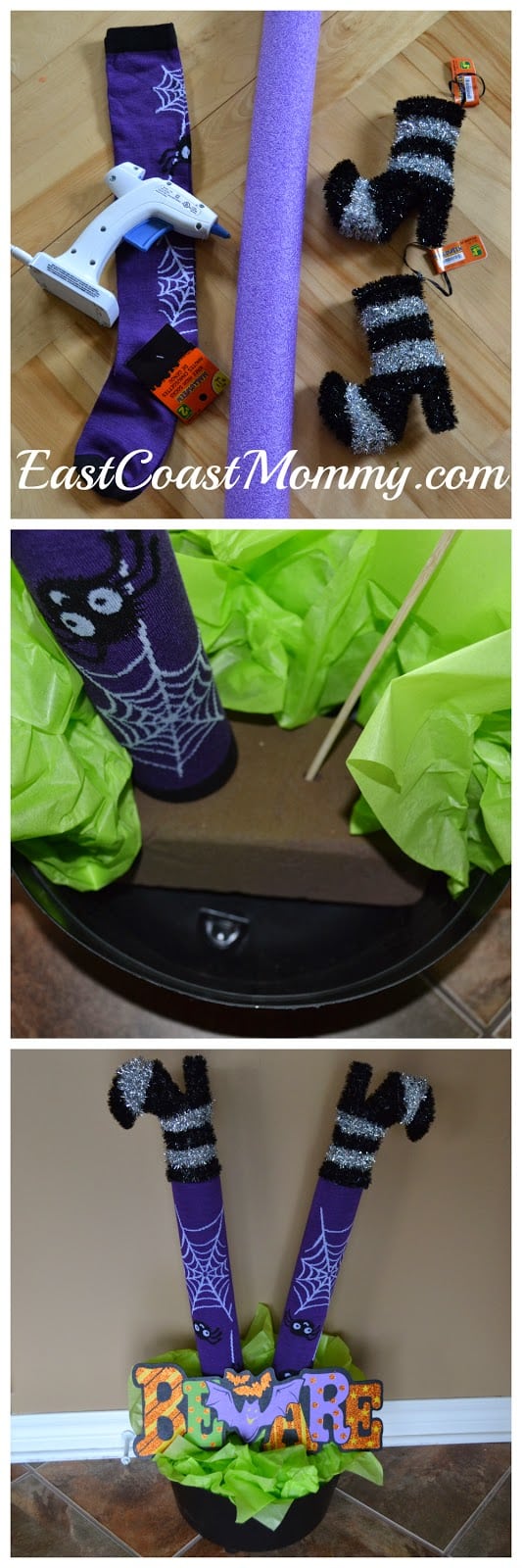 Use espaguetes de espuma para fazer decorações de Halloween, como as pernas de bruxa deste tutorial aqui. A ideia também vale para pernas de elfo!