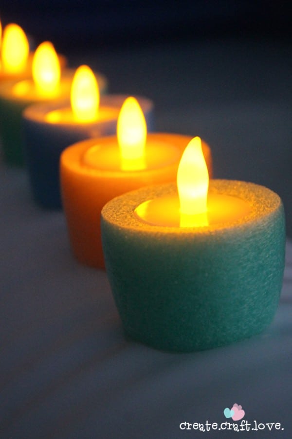 Ilumine a piscina à noite com mini velas de LED flutuantes. Veja o tutorial original aqui.