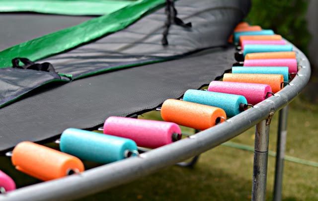 Cubra as molas do trampolim com espaguete de espuma para deixar o equipamento mais seguro para as crianças!