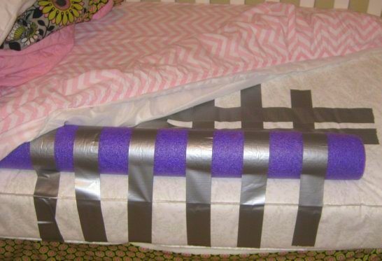 Se seu filho estiver aprendendo a dormir na cama, ele pode correr o risco de acabar caindo. Proteja-o cercando a cama com um espaguete de espuma.