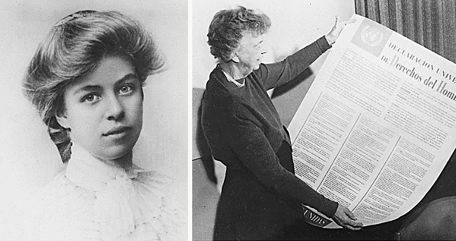 La primera dama del mundo. A pesar de su estatus social alto, Eleonor publicaba artículos para llamar la atención a los problemas sociales, le ayudaba a su marido en las cuestiones políticas, inventó y fundó la ONU, participó en la elaboración de la Declaración Universal de los Derechos Humanos, luchó por la igualdad y libertad para las mujeres.