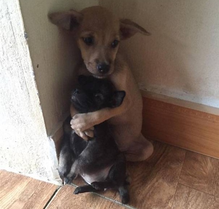 Esses dois cachorrinhos viviam nas ruas do Vietnã até os monges levá-los para o templo. O cão maior muitas vezes abraça o menor para cuidar dele. No entanto, é difícil verificar se a história desses filhotes é verdadeira, já que existem muitas versões contraditórias na Internet. Mas todas coincidem em um fato: este é um verdadeiro exemplo de amizade.