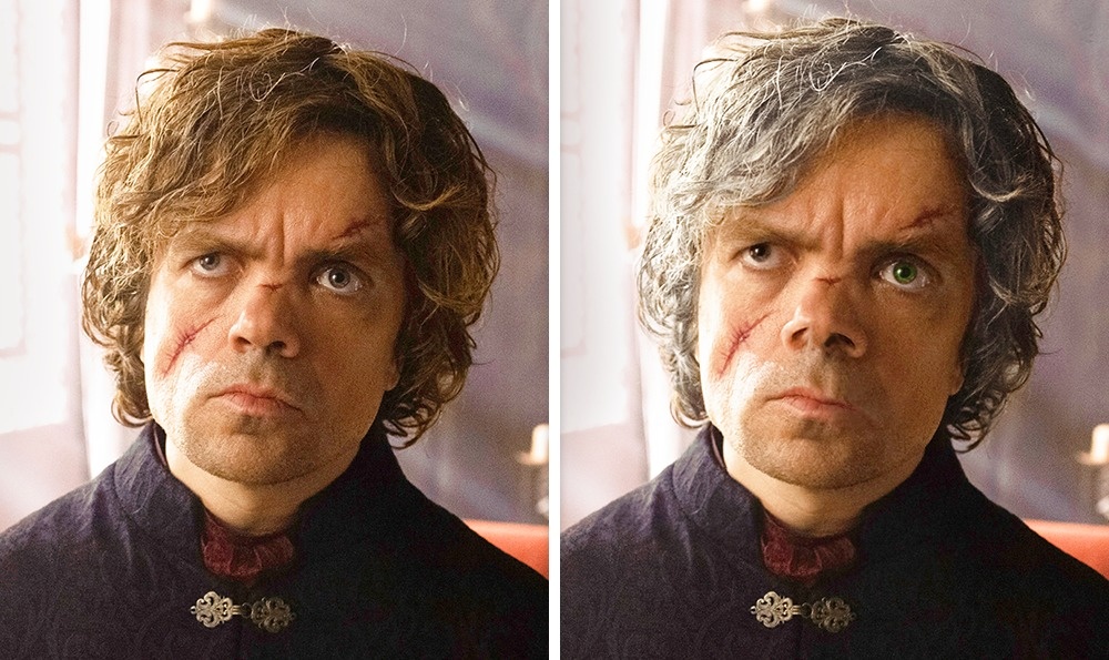 La versión literal de Tyrion es bastante diferente a los que vemos en la pantalla. Para parecer al original, el cabello de Peter Dinklage debe ser de color blanco, también debe tener un ojo negro y otro verde. Después de la Batalla del Aguasnegras, según el libro, el personaje perdió tres cuartos de su nariz y una parte de la boca, pero los creadores de la serie decidieron que se podían limitar con ponerle solo una cicatriz en el rostro.