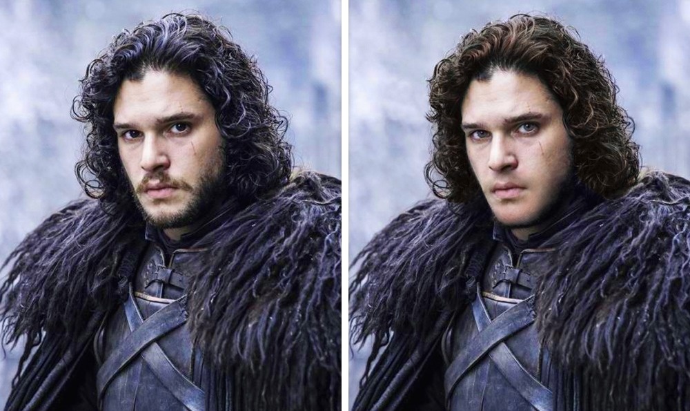 En el libro vemos a Jon como un joven de cabello oscuro y ojos grises.